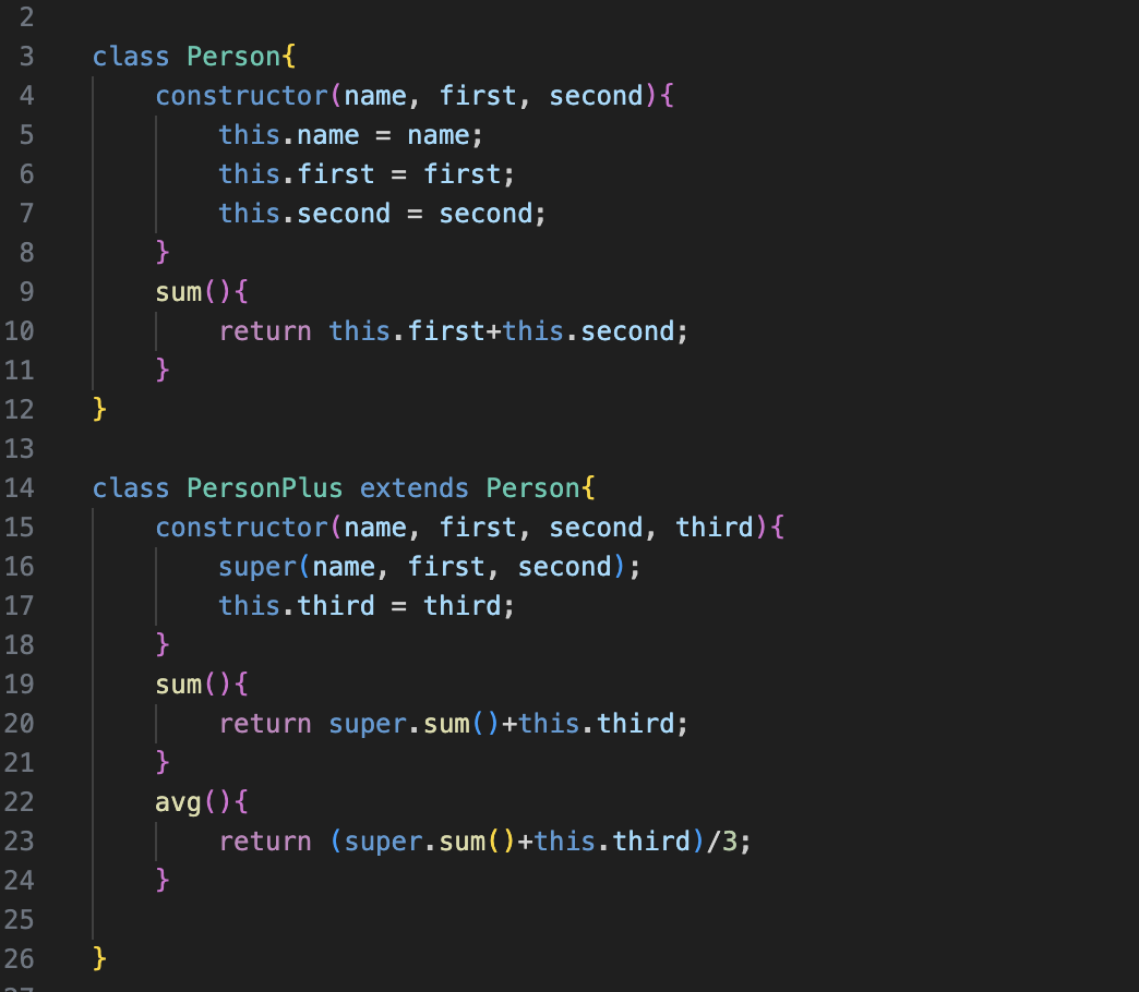 - class PersonPlus extends Person { constructor(name, first, second, third) ~}