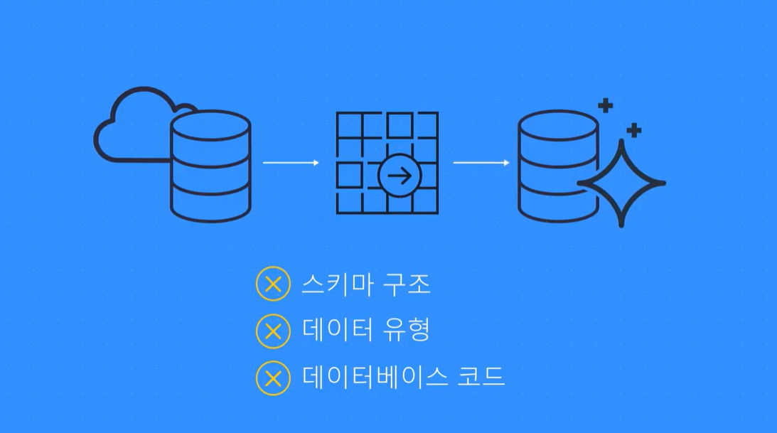 AWS Database Migration Service(AWS DMS)(opens in a new tab)는 관계형 데이터베이스, 비관계형 데이터베이스 및 기타 유형의 데이터 저장소를 마이그레이션할 수 있는 서비스입니다.